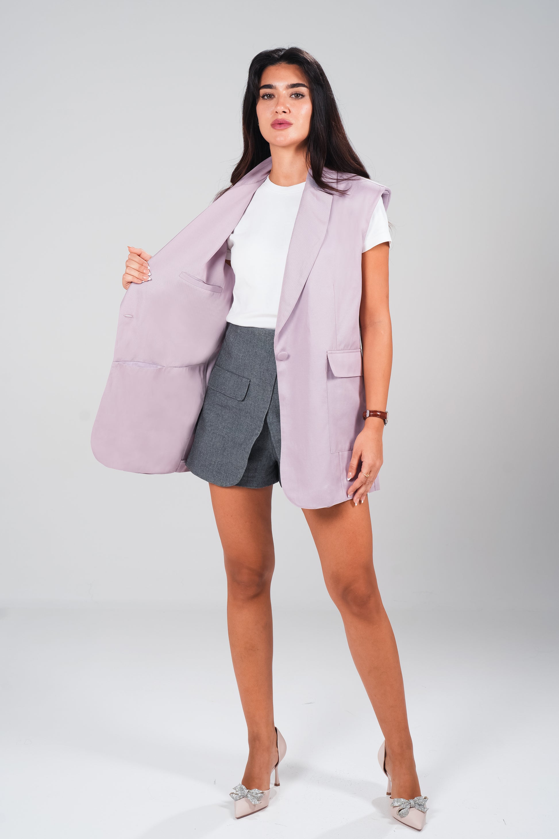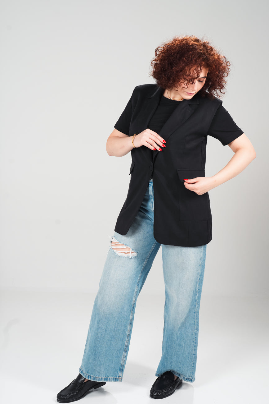 The Chic Vest is our sleek, polished vest designed for busy women and moms. Crafted from a premium wrinkle-resistant fabric, it offers a flawless, structured silhouette perfect for work or evenings. The Chic Vest features six hidden pockets on the inside, and two hidden pockets at the outer seam. It has an oversized look, and a timeless drape, it’s your essential layer for effortless, all-day style.